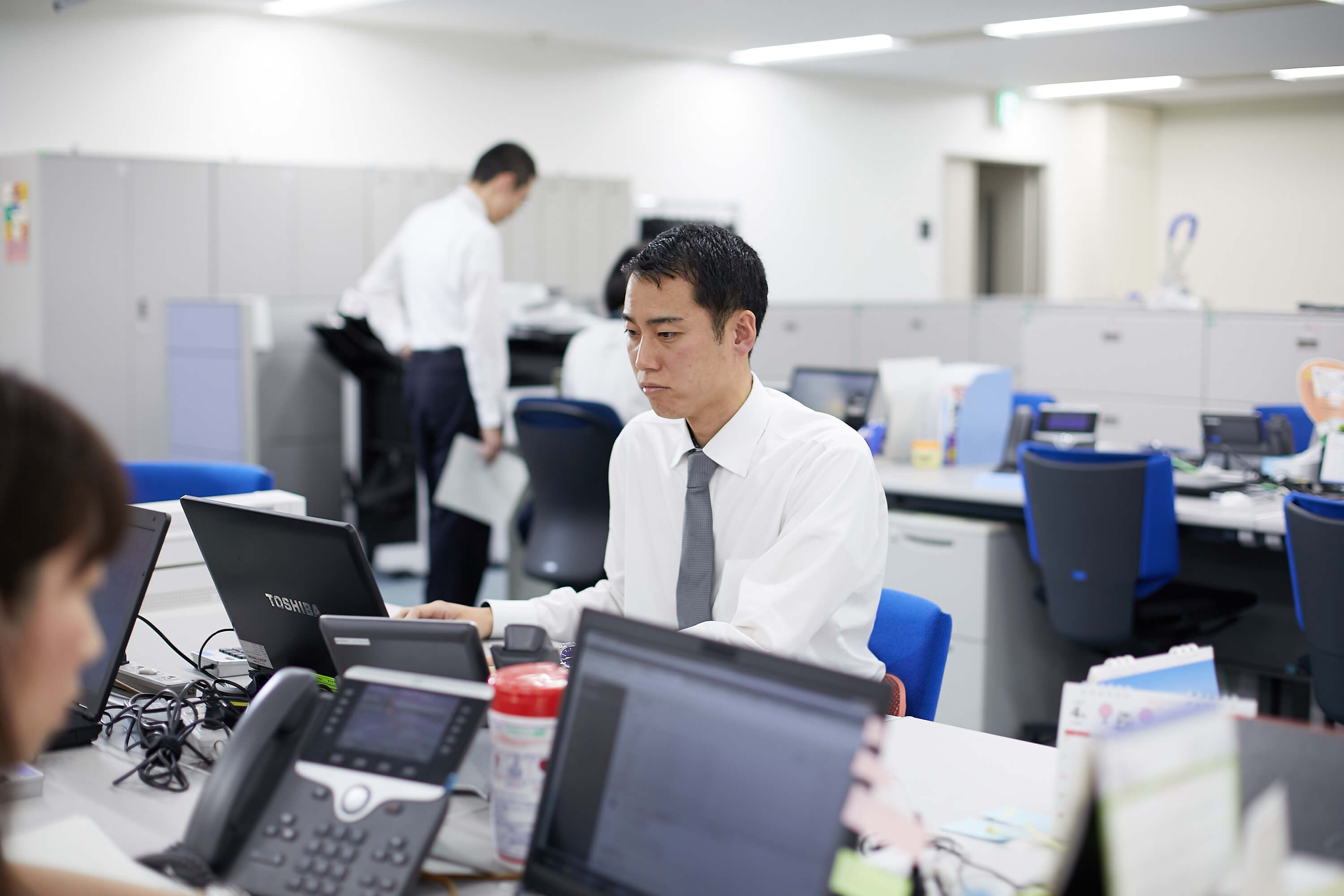 - 組織内において現業務を俯瞰すると、JAの健全性向上に向けた指導的な役割を担う立ち位置となりますので、一般的な金融機関でいうところの本店業務となります。加えて、システム企画ということで、専門的な知識も必要とされます。前職の銀行では、支店において法人向け融資業務を主に担当してきましたから、キャリアからすると今の領域はまったくの門外漢となります。とはいえ、法人ネットバンクは法人融資とも密接に関係しますし、それは私の得意とするところでもあります。それに私は前職において、新規開拓営業に注力していた時期もありますから、足で稼ぐことは苦になりません。どんな仕事も同じだと思うのですが、「どれだけ当事者意識をもって一生懸命になれるか」が重要であり、前述のJAとの同行訪問などを通して現場の課題に真摯に向き合い、課題解決に向けた取組みや施策を現場目線で立案していくことも心がけています。おかげさまでフットワークの良さについては、JA職員の方々や部署の人たちからもお褒めの言葉をいただいています。