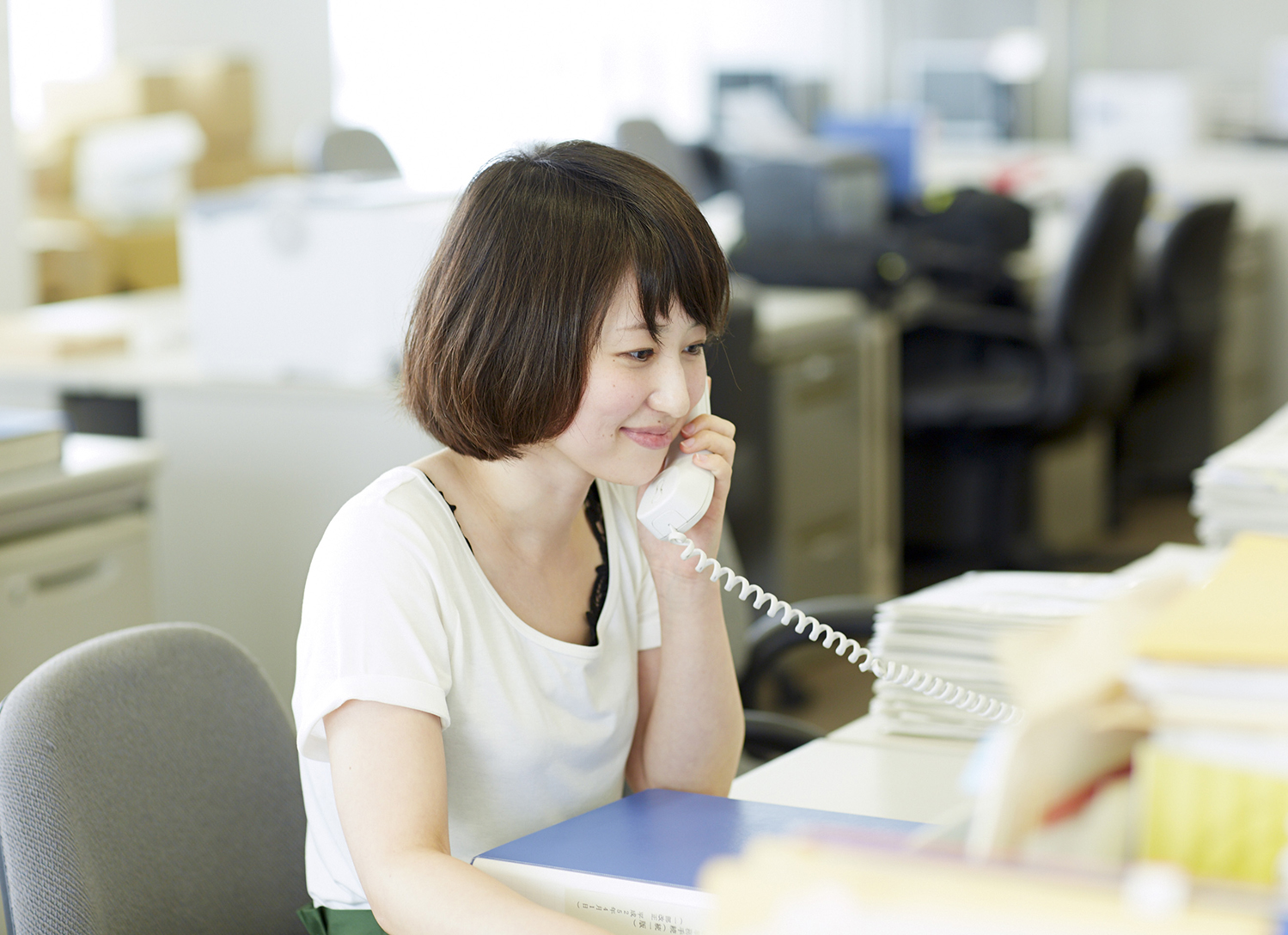 施行される法律の内容と現在の事務手続きを照合して、改正すべきポイントをチェック。上司の指示に従って新しい事務マニュアルの作成をサポートする。業務時間中はJA信農連などからの電話照会も多数。事務制度や商品概要などに関する質問に丁寧に対応していく。